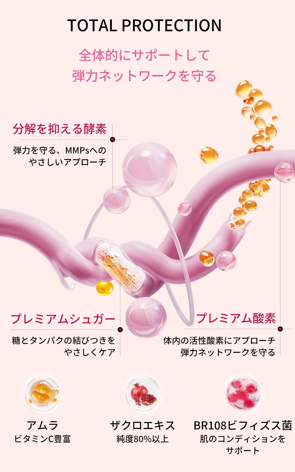 ✅ 高純度エラスチン配合:カツオの動脈球から抽出したたんぱく質。しなやかさと弾力を支えます。
